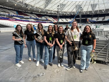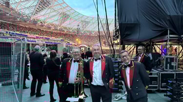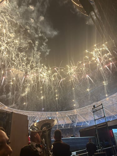 Then came the next surprise: an invitation to perform Remember My Name live with Sam at London Stadium. Standing on that stage, surrounded by tens of thousands of fans, was surreal. The sound of our brass echoing through the stadium, the lights, the energy—it was electric.